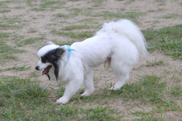 自分はポメラニアンやパピヨンのサマーカットにはネガティブなんだけど、パピの体調も考え今回短くして貰いました(泣)