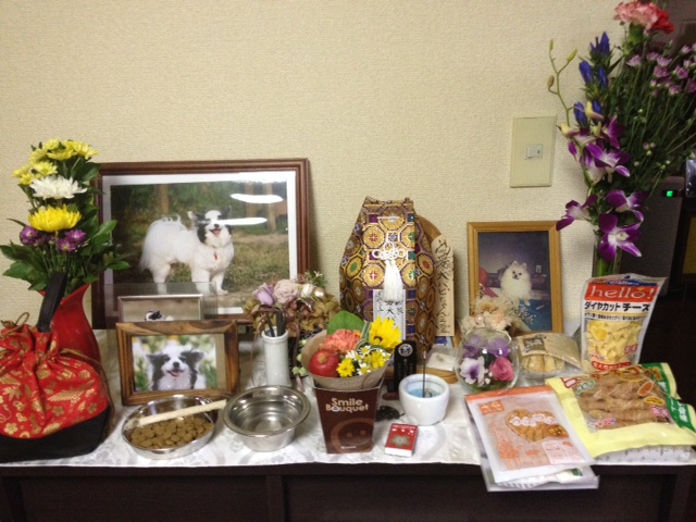 今日は仕事で午前中会議だったんですが、出勤前にジョンとぱるるを動物病院に預け(ペットドック)、夕方迎えに行き一緒に動物霊園へ3回忌の法要をしてもらいに行きます。