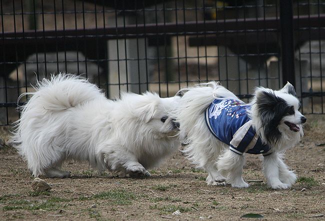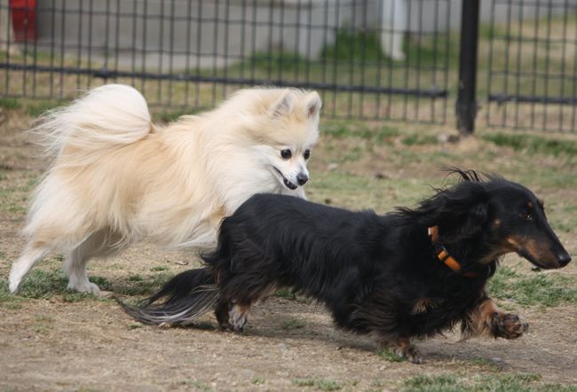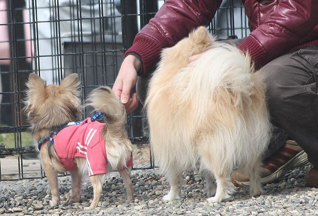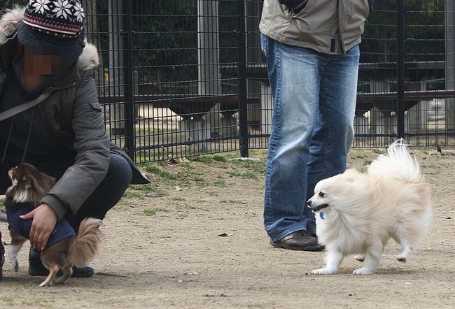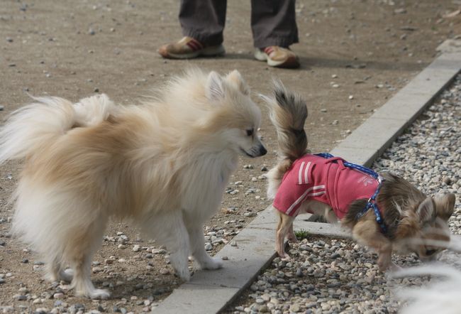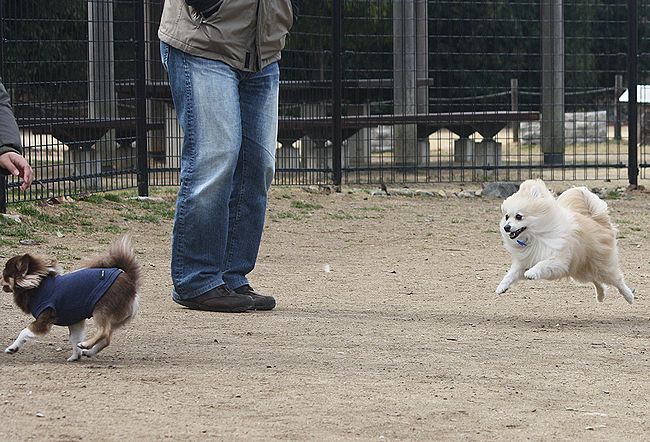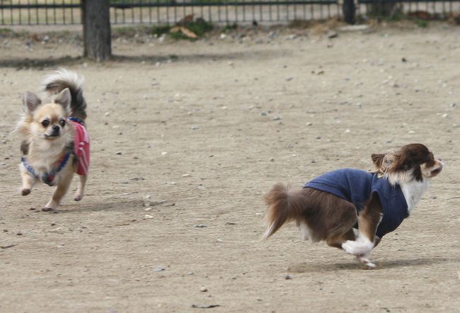 どうもチワワ君は追いかけられるのが駄目なようで、飼い主さんに逃げて行きました。