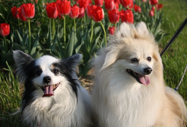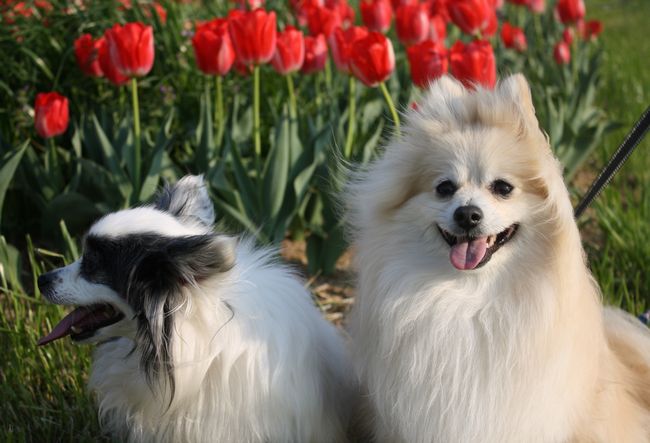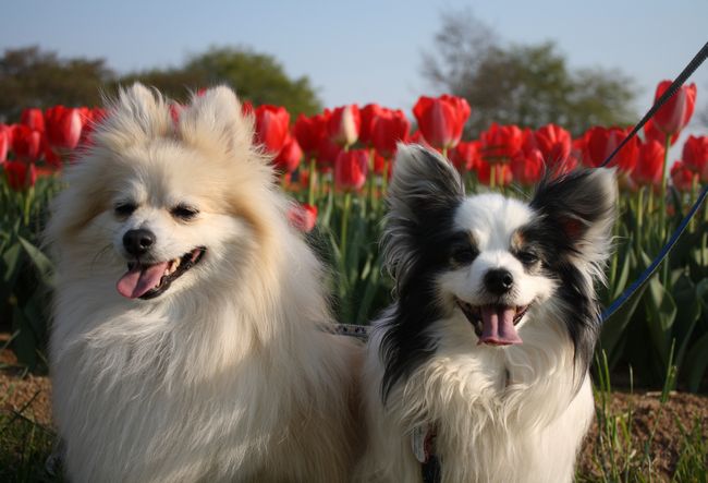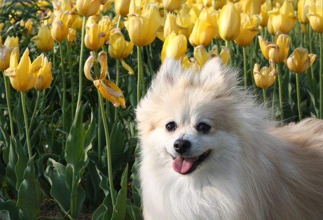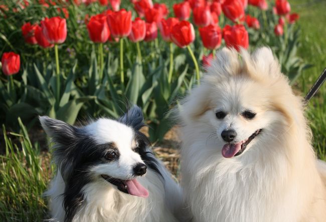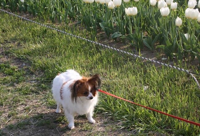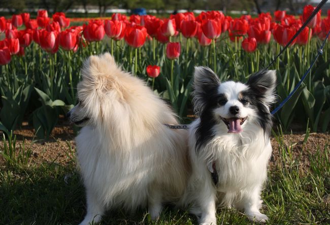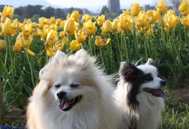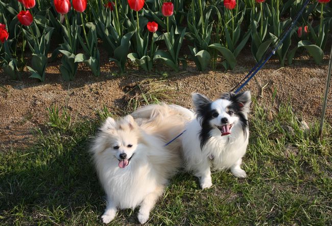 チューリップを見ながら歩いていると、ちらほらとワンコ連れの方とお会いしました。