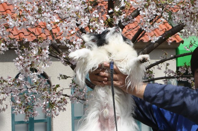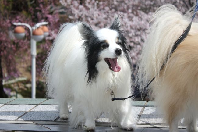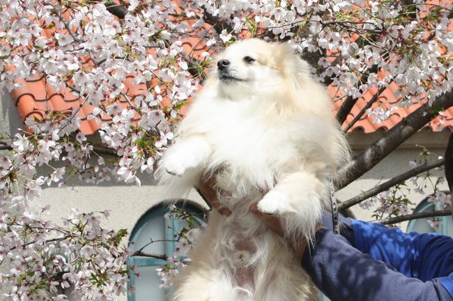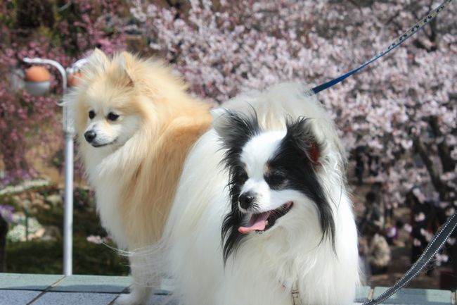 桜とワンコのツーショットは難しいですよね。