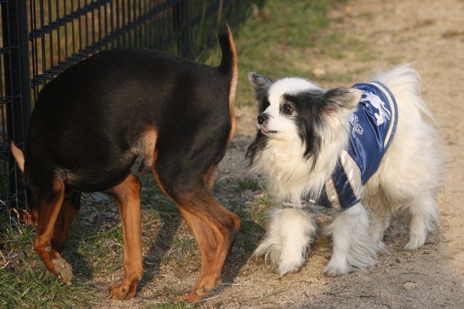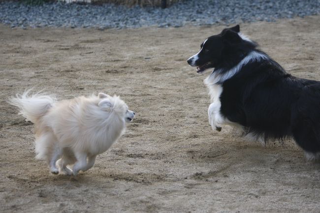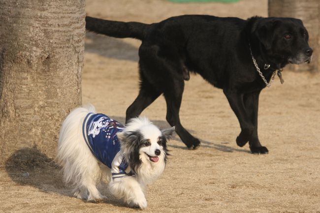 凄く犬が苦手なようで犬が近付いて来ると、一目散にお姉ちゃんの許に逃げてきていました。