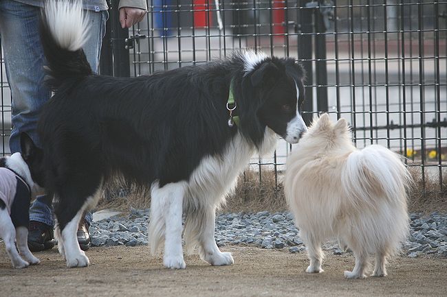 そろそろランから出ようかと思っている時に、ボーダーコリーがやってきました。
