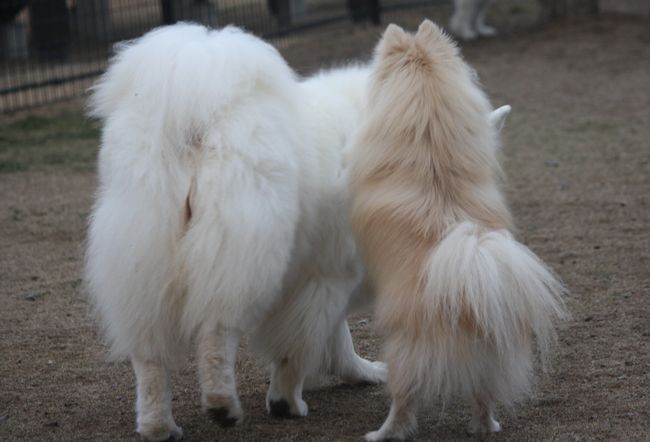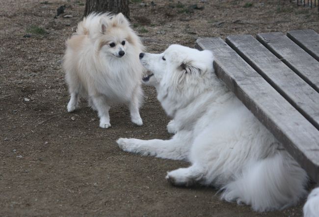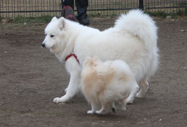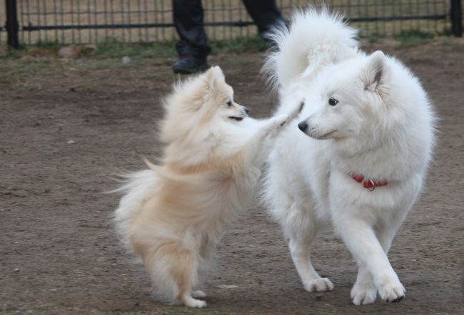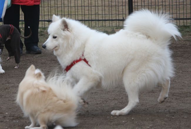 対小型犬だったらまだしも、よりによってサモエドさんに対してやっている姿は見てて痛々しくて悲しかったです(爆)