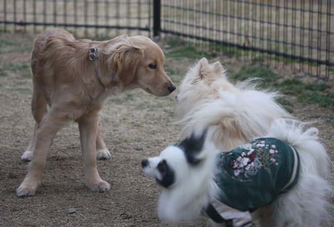 ジョンは諦めたのか、こちらのゴールデンのパピー君とご挨拶。