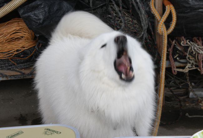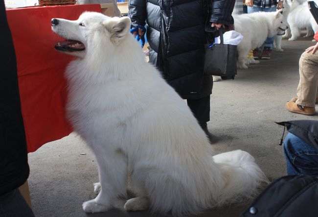 三木SAに続きここでも牡蠣を買いに来られていたお客さんが沢山のサモエドにビックリされて、写真を撮られてる方が大勢いらっしゃいました。