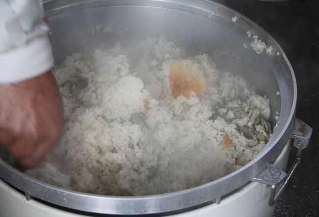 美味しい牡蠣とアナゴをたらふく食べて腹がいっぱいだったけど、絶品との牡蠣飯が炊き上がった様なので自分も頂くことにしました。←どんだけ食うねんって言わないで(^^;)