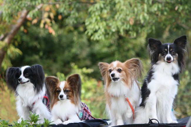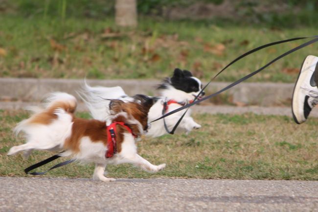ジョンとパピの視線の先にはモカちゃんとアロアちゃんの走っている姿が^^