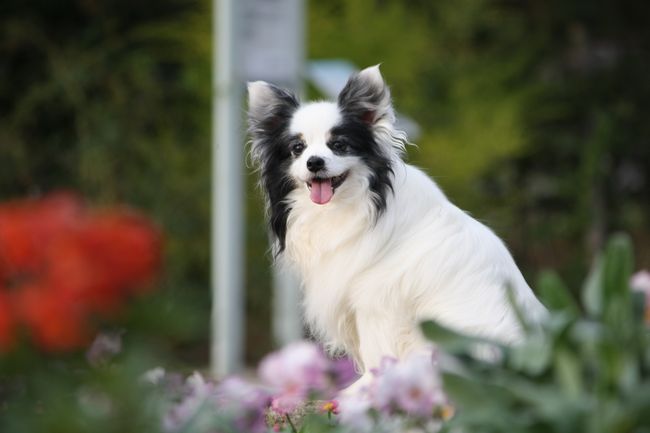 この写真は円形の花壇でパピの座っている場所の反対側から撮ったものなんです。