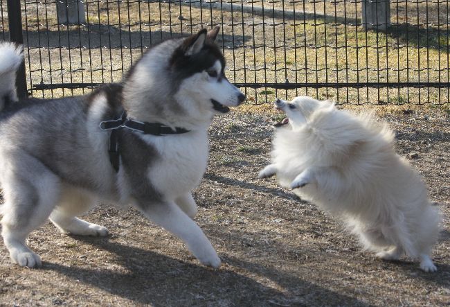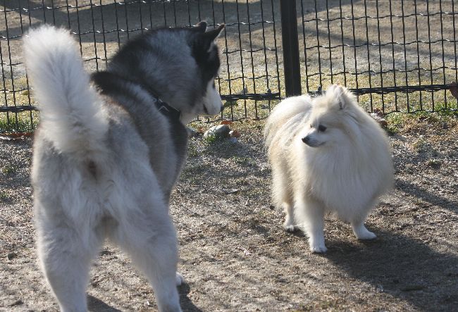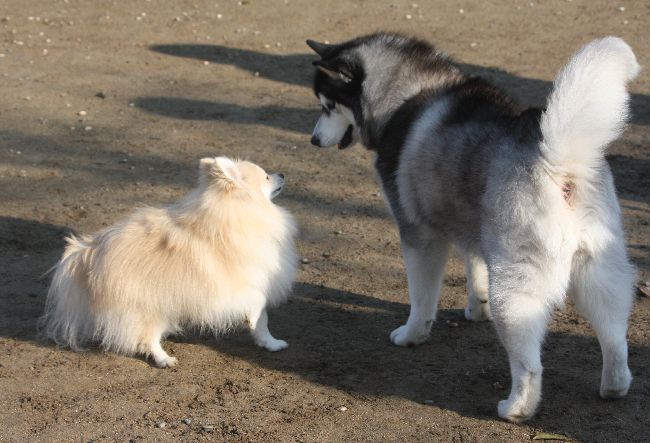 ジョンにハスキーのメイちゃんが挨拶に来てくれました♪