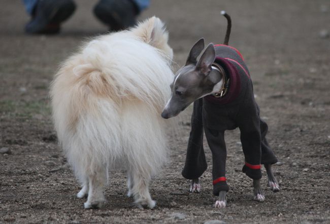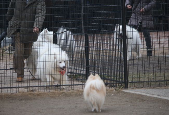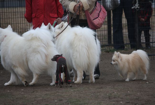 こうしてイタグレ君と遊んでいると、サモエドさんがやってきました。