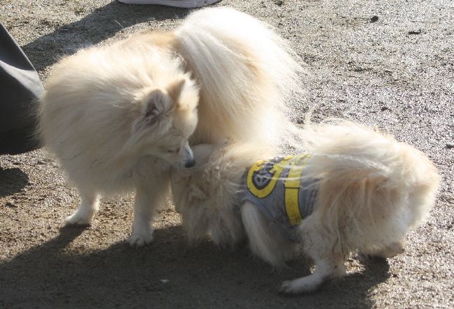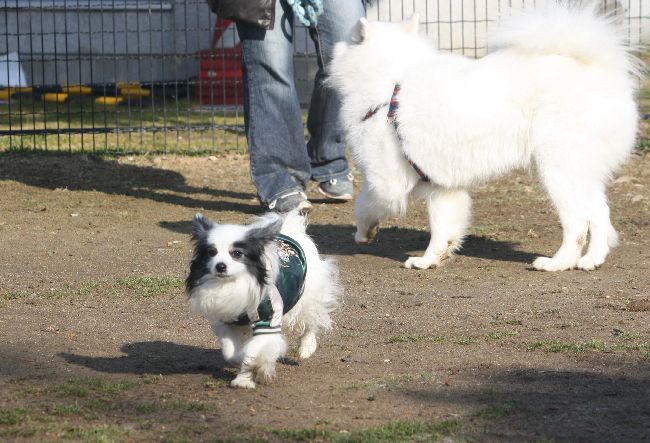 このシェルティー君はオフ会参加の子ではなくて後からランに入って来たんだけど、みんなに圧倒されたのかちょっと困っていた様です。