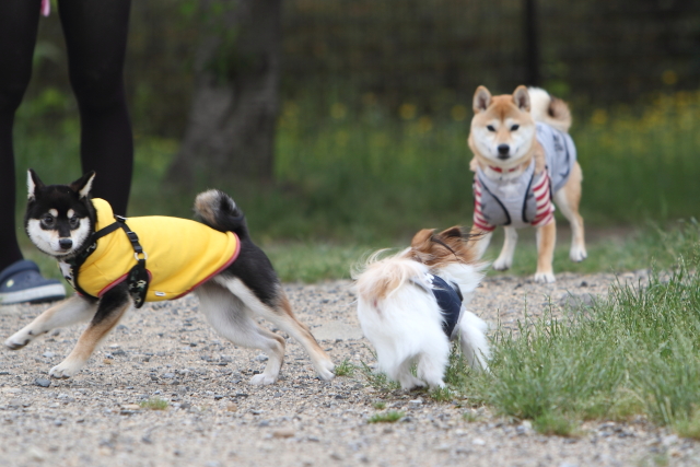 ランには最初フレブルとダックス飼いの方がいたんだけど、すぐに帰られ入れ替わりにシュナウザー4頭と柴犬2頭がやってきました。