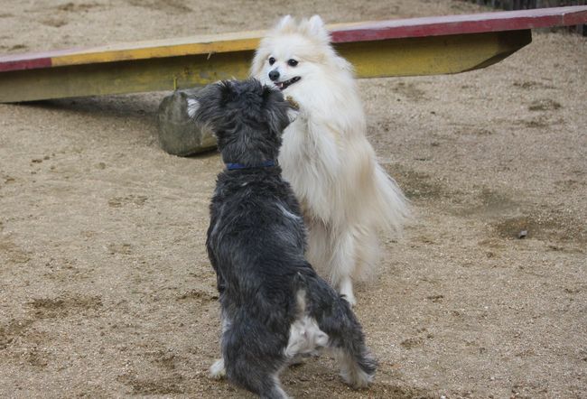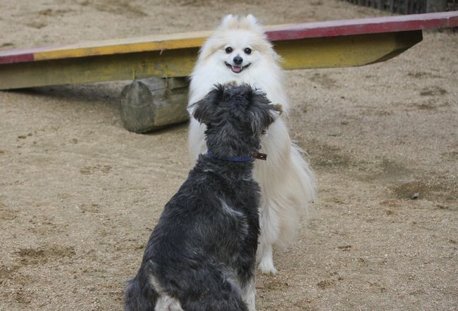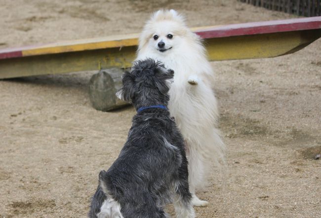 ワンコ同士の遊びって、追いかけっこか相撲みたいなじゃれ合いのどちらかですよね。