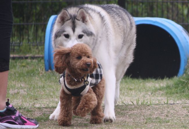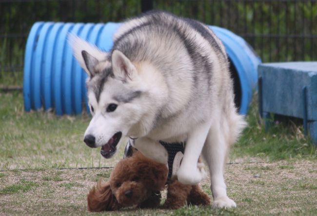 その元気さが仇になり、ハスキー君にロックオンされて追いかけられていました(笑)