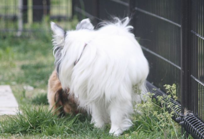 最近見ていて気が付いたのは、近くでジョンが撫でられているとパピも撫でて貰いたい様で、ジョンを撫でている人に擦り寄っていきます。