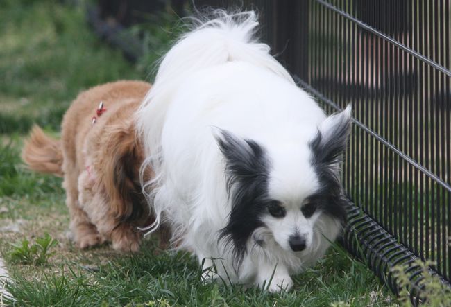 パピが振り返る度にダックス君の動きが止まって、まるで「だるまさんが転んだ」を見ているようでした(爆)