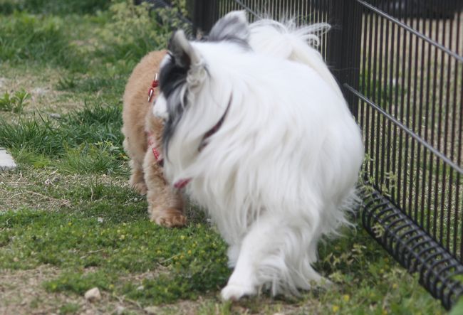 ハスキー君の興味がトイプーちゃんにいって、ノビノビ走るジョン(笑)