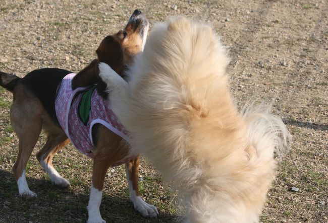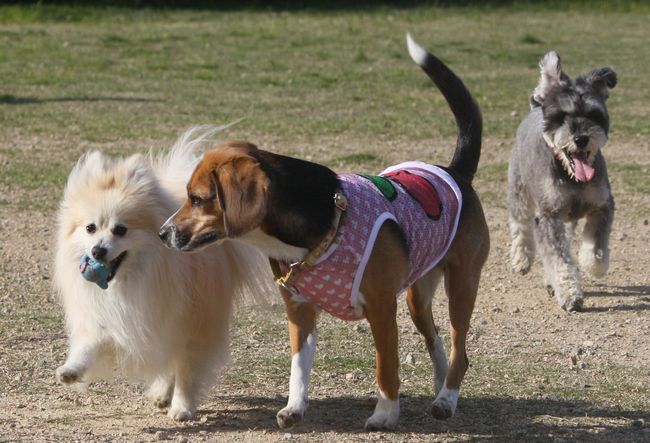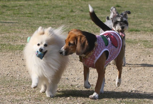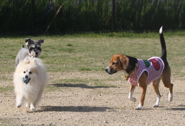 話を聞くと以前ここでジャレ合って遊んでいたワンコの飼い主さんに、「噛まれた」と大騒ぎされたらしくそれ以来人が少なくなったこの時間に来る様にしているとの事でした。