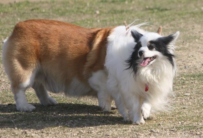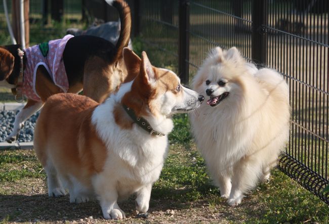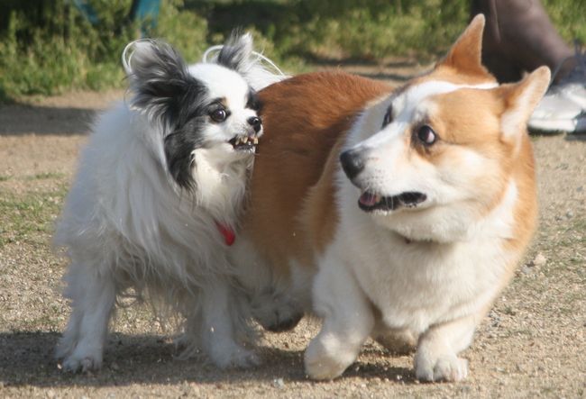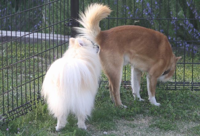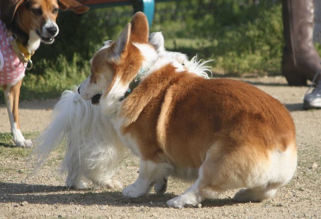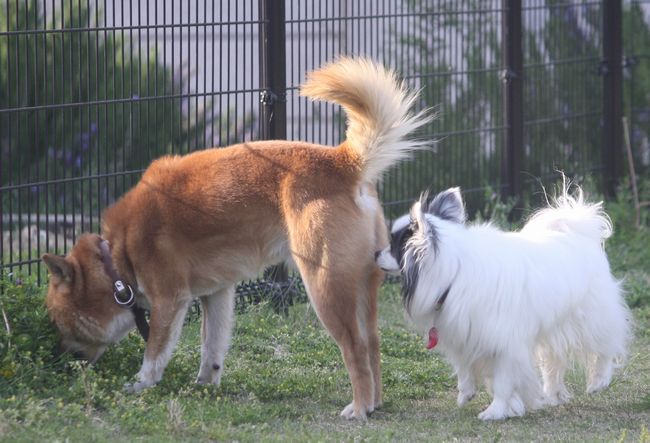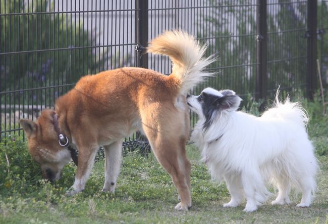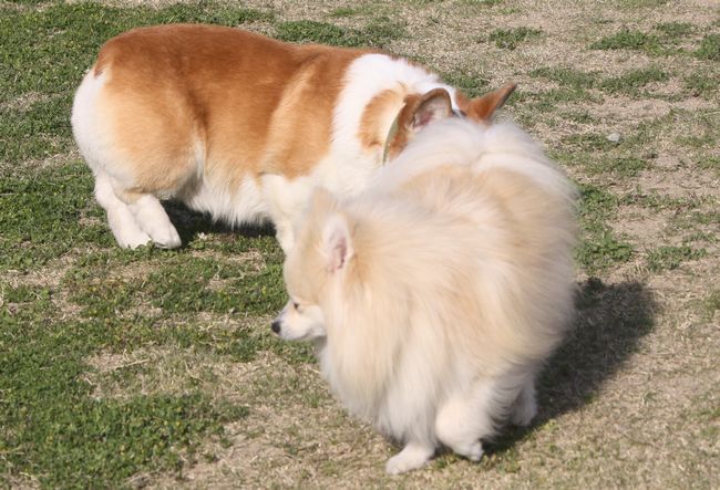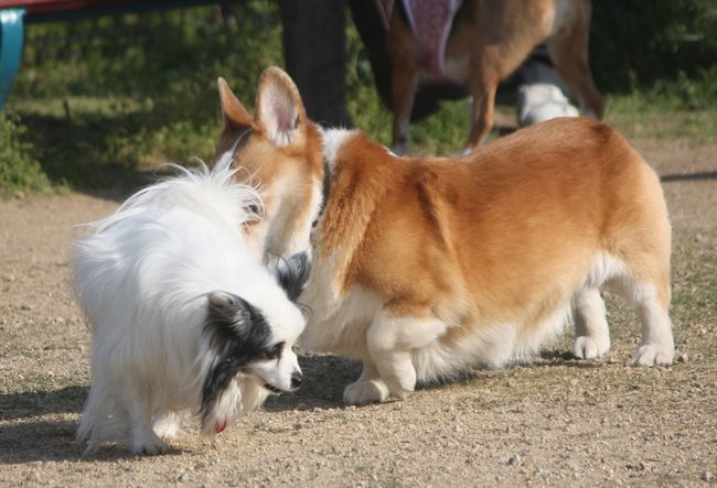 パピはコーギー君に匂いを嗅がれていましたが、案の定…
