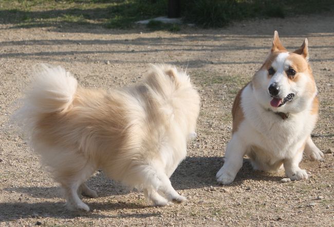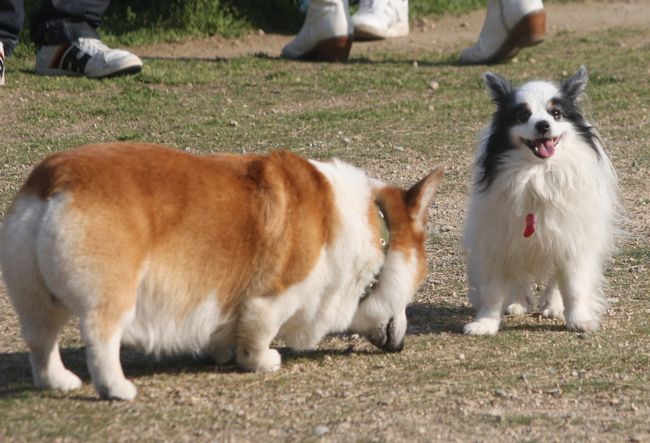 それにしてもコーギー君はえらい嬉しそうに付いて行ってるな(笑)