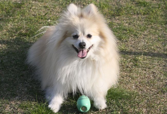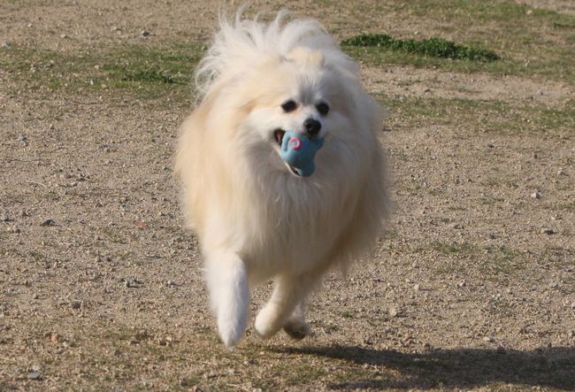 こんな感じでジョンがボールを咥えていても、かなり執着していました。