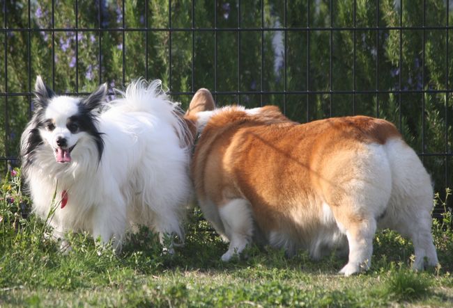 怒ったその時は離れるコーギー君でしたが、しばらくするとまた匂い嗅ぎするコーギー君。