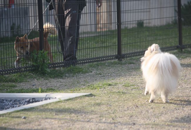 ランの外にワンコ連れの年配のご夫婦が来られましたが、ランには入ってこられずに周りを散歩されていました。