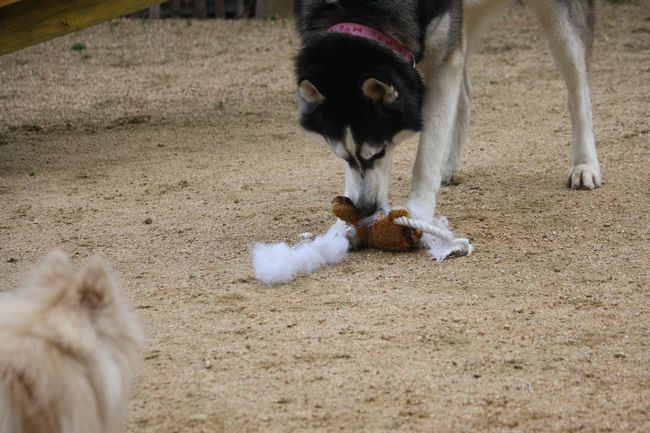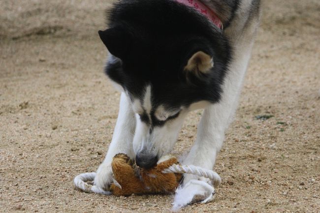 うちも昔はこの手のおもちゃを買ってたけど、すぐに駄目にするし中綿を食べるのが怖いのでこの手のおもちゃを買うのは止めてラテックス系のおもちゃにしましたよ(^^;)