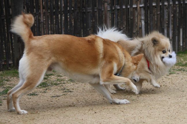 ポン太君との追いかけっこが終わったふく君は、今度はクッキー君と遊び始めました。