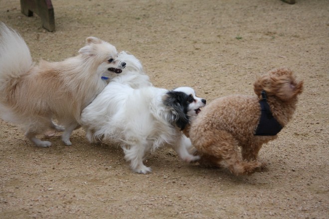 ドッグランに連れて行き始めの頃は、毎回と言っていい程大型小型犬問わず喧嘩をしていましたし、男性の飼い主さんや子供には、吠えたり裾を噛みに行っていました。