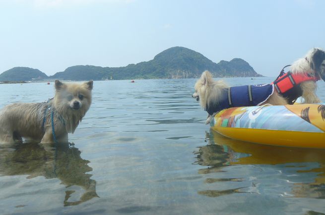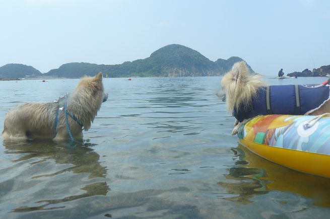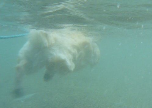 毎回うちは、足が着くか着かない所辺りで遊んでるんですけど、この日は今までより沖の方までお迎えに行く羽目になりましたよ(^^;)