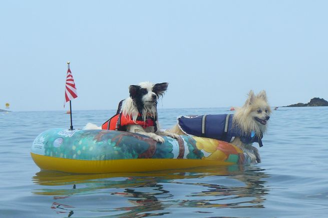 乗せた瞬間から、飛び込む気満々なポン太君。