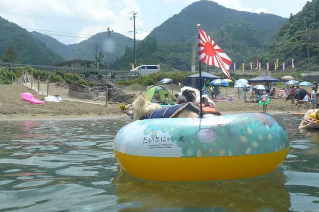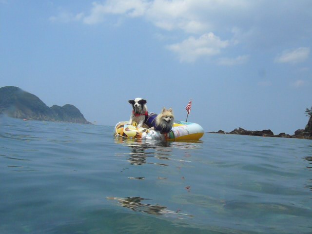ポン太君がダイブすると飛び込み時の蹴りと波とで、【たいたにっく丸】は沖の方へ漂流(爆)