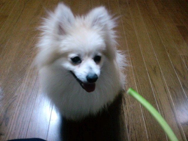 調理中ジョンの視線に耐えられず(弱)、少しお裾分けしてあげました。