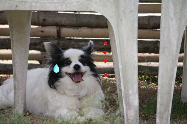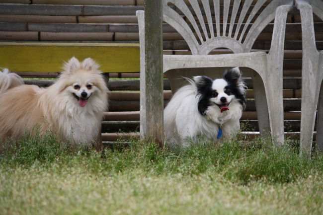 ご老体なパピはずっと椅子の下で休憩してたけど、若いジョンは水分補給+休憩するとまた走り出しました。