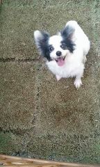 パピの由来は、パピ=パピヨンの略称、うちに迎えた時は毛が短く顔も童顔でパピーぽかったからです。