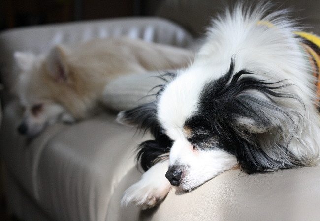 この撮影の前にずっと掃除をしていたので、ジョンもパピも気疲れ?(笑)したのか撮影を始めると寝ちゃいました。