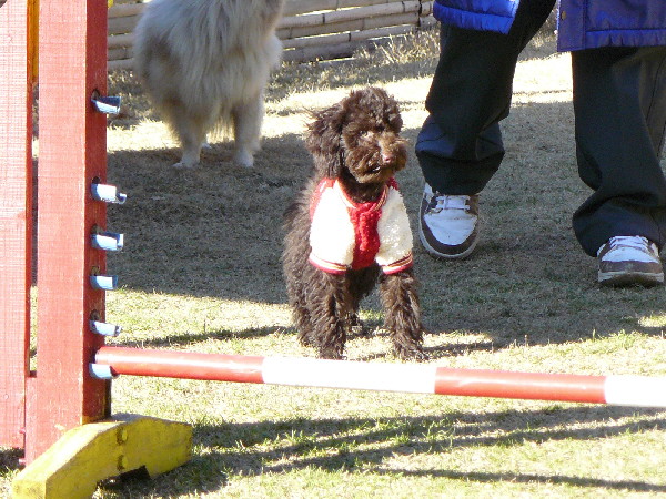 前にも書いた様にこのナナちゃんはまだパピーなんですけど、アジの素質充分ありで教えなくてもドッグウォークをやったりします。ジャンプも実に軽やかにこなします。