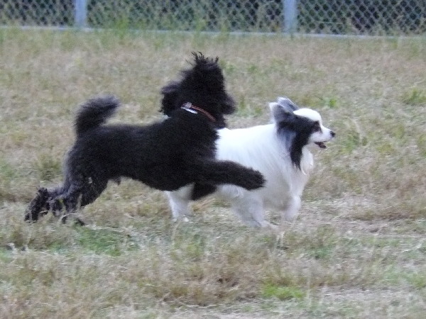 こうして周りが走っていてもあくまでもマイペースなパピですが、この日2度ほどラン内で喧嘩があった時は、沢山のワンコが吠え集まっている所に何故かパピも走って向かっていってました(^^;)