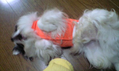 ポメはダブルコートだしもう少し冬本番になってからでいいかな?と、無抵抗なパピだけに着させています(笑)