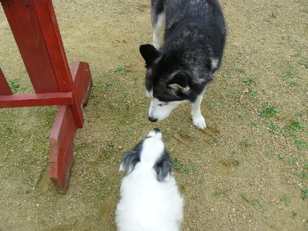 こうしてパピが威嚇しても付いてくる子ってジョンの兄弟犬以外で初めて見ました。