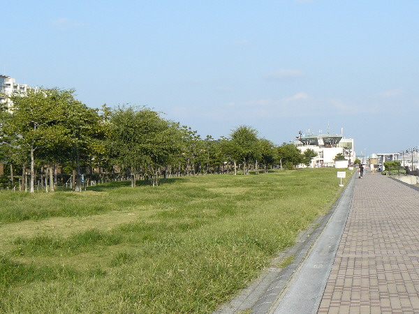 この写真は朝早かったので人が写っていませんが、夕方の帰り際には沢山の方が芝生で遊んだりくつろいでられてました。