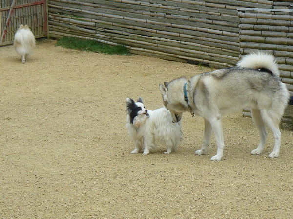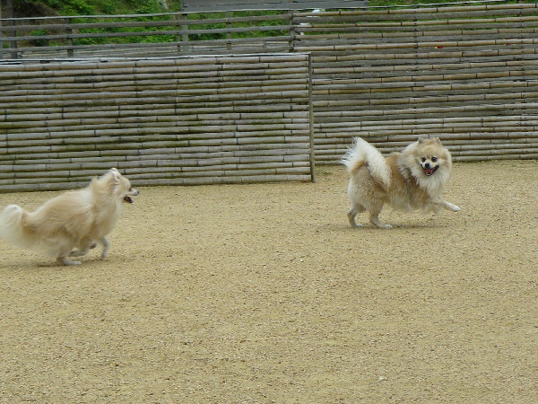 お初なワンコや大型犬が多かったので、場に慣らす為にリードをつけて一周してから自由にさせました。