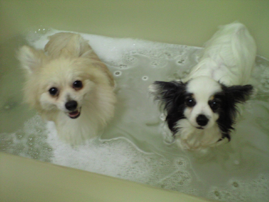 ジョンを湯船から出して洗っている時に、先日さるんばママさんがシャンプーネタ(←クリック)をしていたのを思い出したので、ちょっとうちもやってみました。