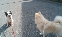 今日は自分より大きい柴犬やゴールデンの子に挨拶することも無く突進していってました(;゚Д゚)