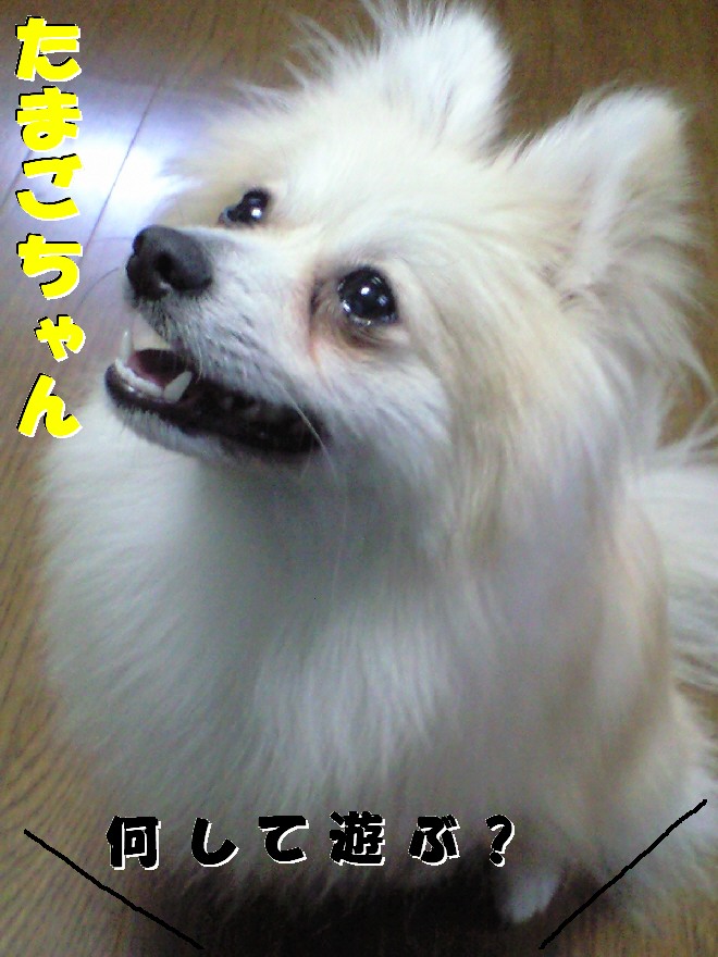 いつもの様にジョンはたまごちゃんを持ってきて投げてくれの催促。