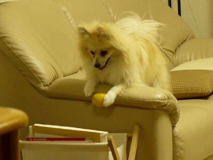 もうソファの肘掛でカミカミするなよっヽ(`Д´)ノ