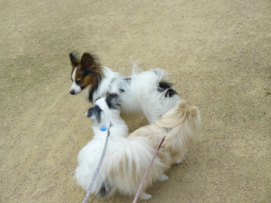 ジョンは色んな子と挨拶したり遊んでいる中、パピは相変わらずテクテクとマイペース(笑)