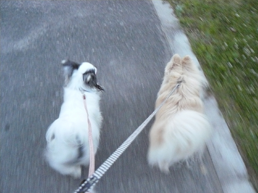 昨日は庭にも出していなかったので、ジョンもパピも外に出るのがとても嬉しそうで、リードを付けるのも一苦労でした(^^;)